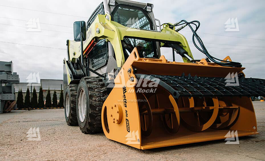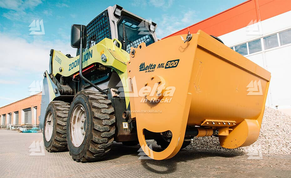 Навесной бетоносмесительный ковш Delta ML предназначен для смешивания сыпучих и вязких веществ — бетона, удобрений, комбикормов, а также приготовления цементного раствора. Ковш-смеситель (бетономешалка) успешно применяется на небольших строительных площадках с мини-погрузчиками, где невозможен проезд габаритной специальной техники. Подача бетонной смеси из навесной бетономешалки происходит через отверстие на дне ковша с автоматической заглушкой.