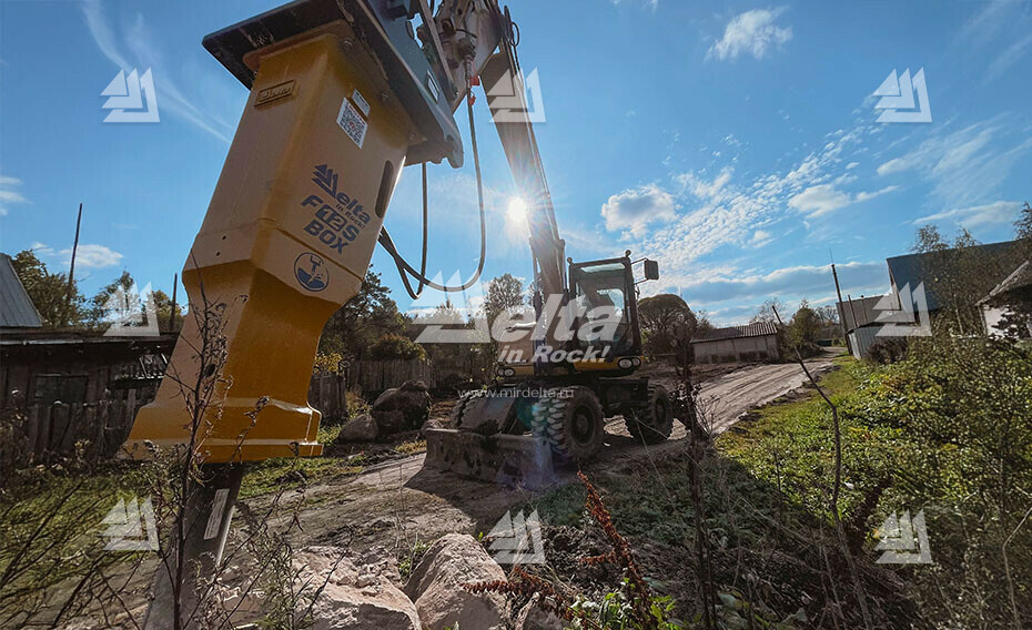 Гидромолот Delta F-12S Box — навесное гидравлическое оборудование, которое используется для разрушения асфальта, бетона, рыхления мерзлого грунта и других общестроительных и дорожных работ.